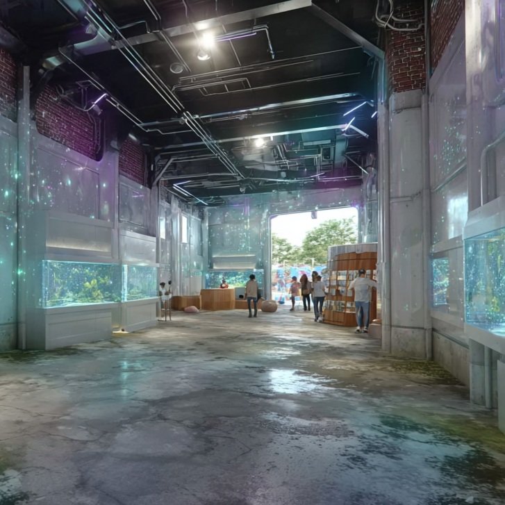 A VR arcade and immersive learning lab featuring AI-generated worlds and sensory storytelling